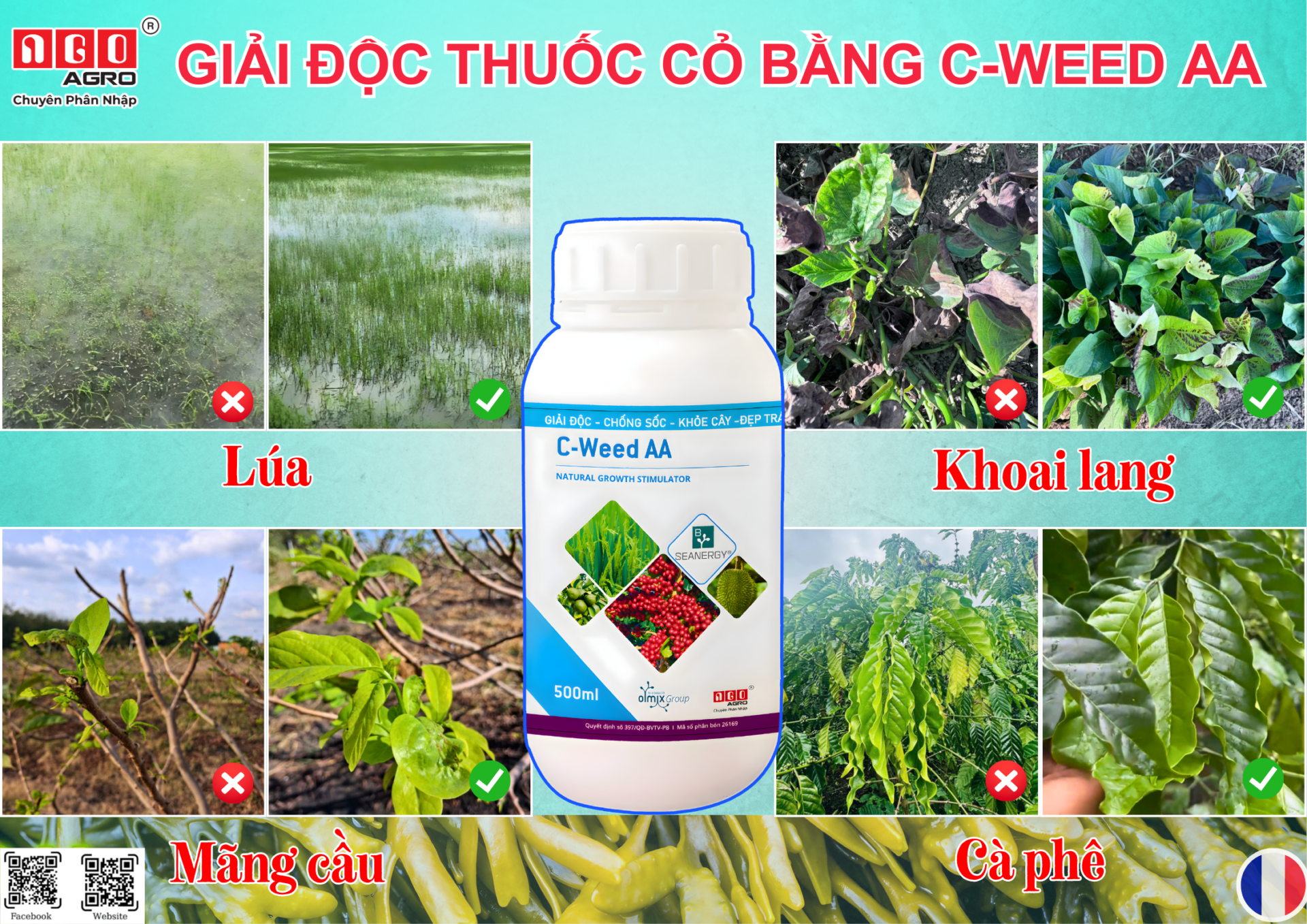 CỨU CÂY CẤP TỐC – GIẢI ĐỘC THUỐC CỎ CÙNG C-WEED AA Bà con lo lắng khi cây trồng bị “sốc thuốc cỏ”, vàng lá, cháy chóp, chậm phát triển? Đừng lo, Ngô Agro mang đến cho bà con giải pháp C-WEED AA – Siêu phẩm từ Ngô Agro với công nghệ độc quyền B-Seanergy®…